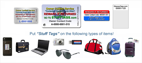 Attachable Stuff Tags come in sets of 4 and are great for luggage, backpacks, sport bags and other such items.